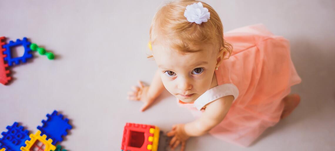 Favorire il gioco libero su un tappetino morbido per stimolare la motricità e il contatto corporeo con altri oggetti e persone.