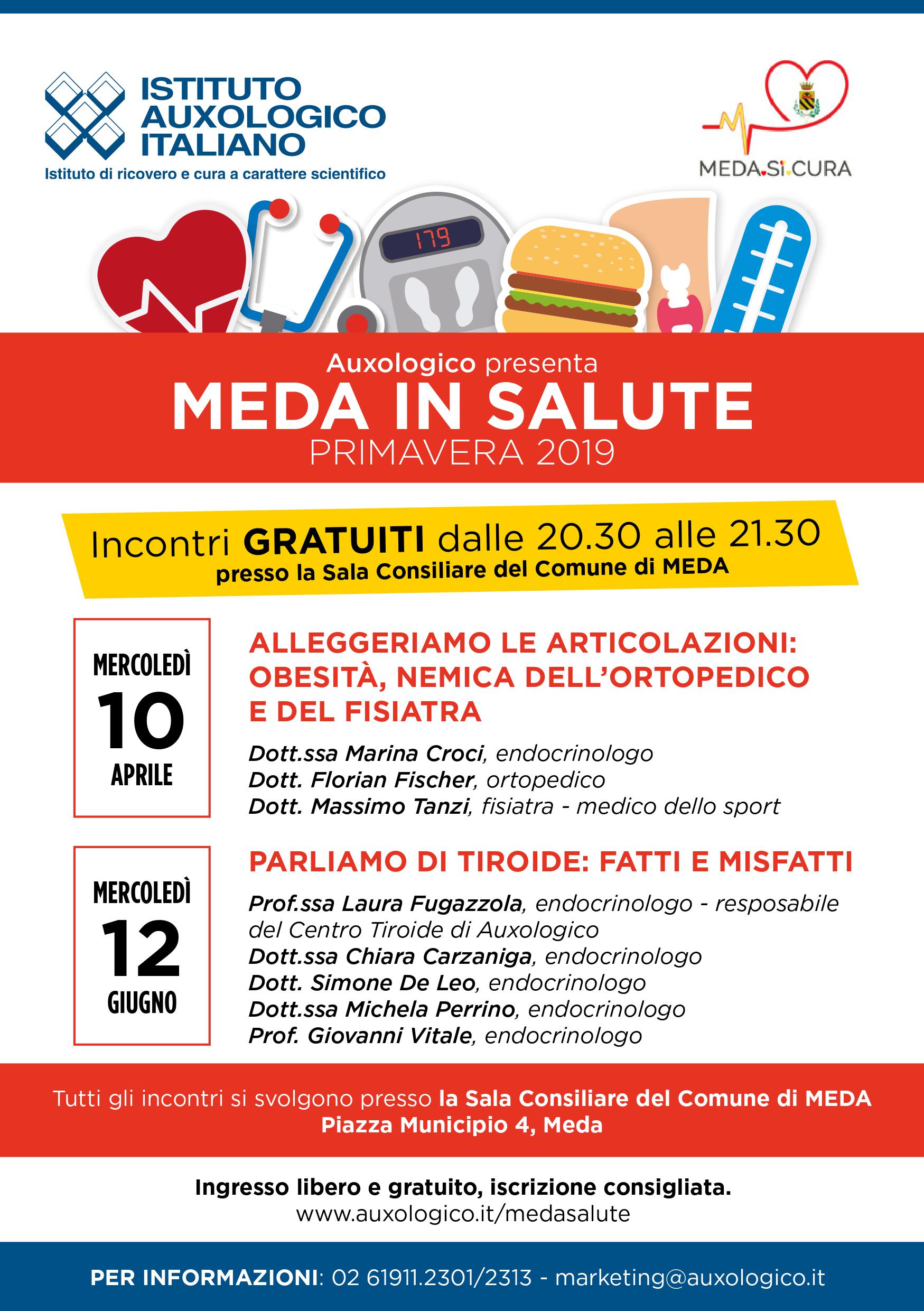 Gli specialisti di Auxologico ti invitano a due incontri gratuiti presso il Comune di Meda per parlare di prevenzione e salute: Meda in Salute.