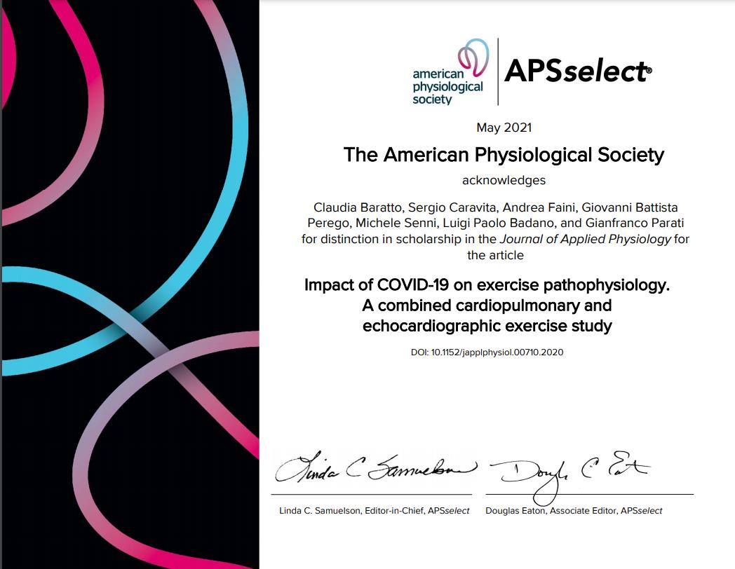 Il lavoro è stato selezionato per essere inserito in una vetrina dell'American Physiological Society che raccoglie alcuni dei migliori articoli recentemente pubblicati su ricerche fisiologiche.