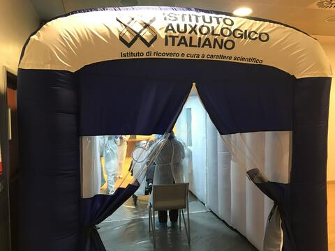 Un abbraccio, un gesto semplice eppure tanto difficile da compiere in tempi di distanziamento sociale. È stato inaugurato mercoledì 23 dicembre 2020 il “Tunnel degli Abbracci”, una struttura ideata appositamente per permettere agli ospiti della Residenza per Anziani di Auxologico (RSA) – costretti all’isolamento come misura di protezione contro la diffusione del Covid-19 ad un lungo distacco dai propri cari – di rivedere e poter abbracciare i parenti in piena sicurezza.