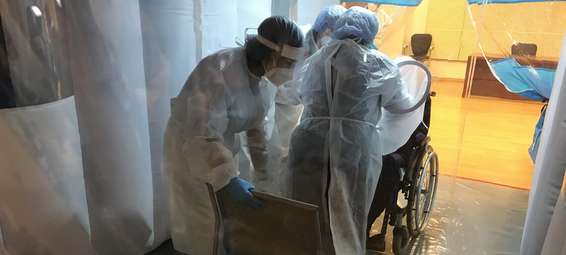 Il contatto avviene in modo assolutamente sicuro, non solo perché il parente viene sottoposto a tutte le misure di sanificazione e ad un tampone rapido prima di accedere alla struttura, ma anche poiché il telo che separa i famigliari lascia passare il suono, ma non l’aria, consentendo alle due persone di ritrovarsi viso a viso, seppur con una guaina protettiva che le separa.